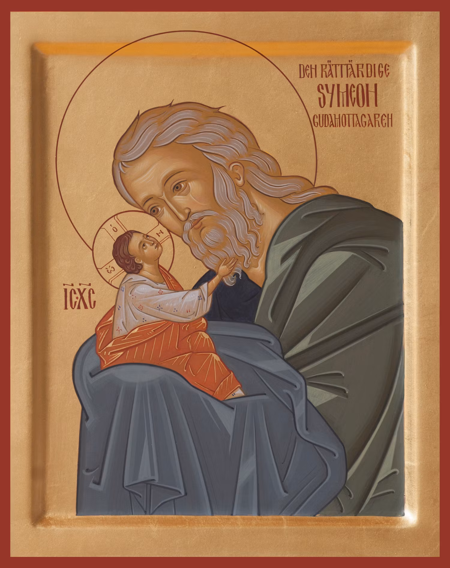 Den baseras på en handmålad ikon av ikonograf Robin Johansson. Läs mer på ikonverkstaden.se.