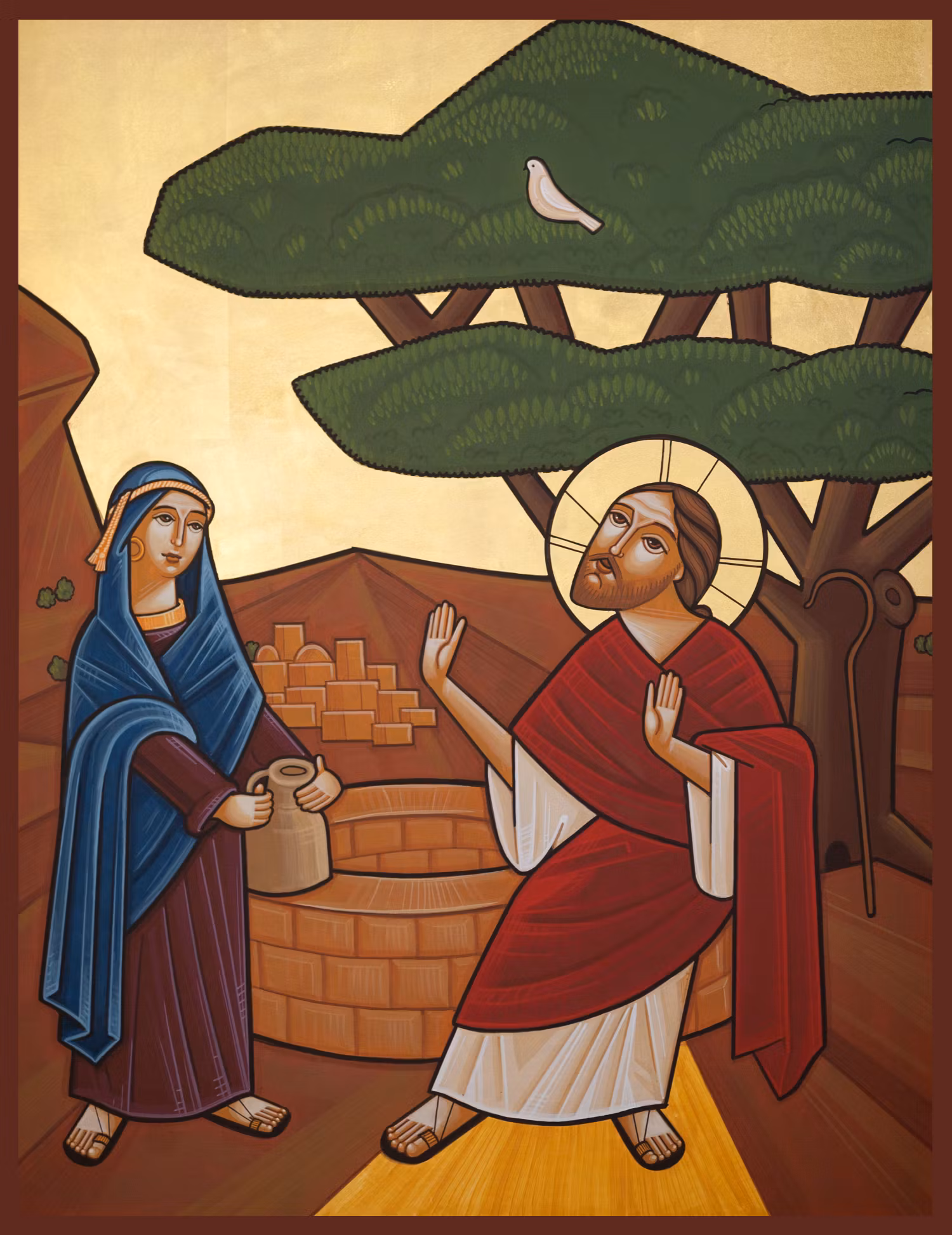 Kvinnan vid Sykars Brunn, ikon i koptisk tradition. Jesus berättar om Livets vatten.
